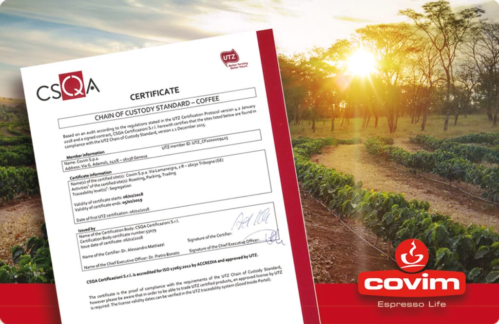 Covim ottiene da CSQA la Certificazione UTZ