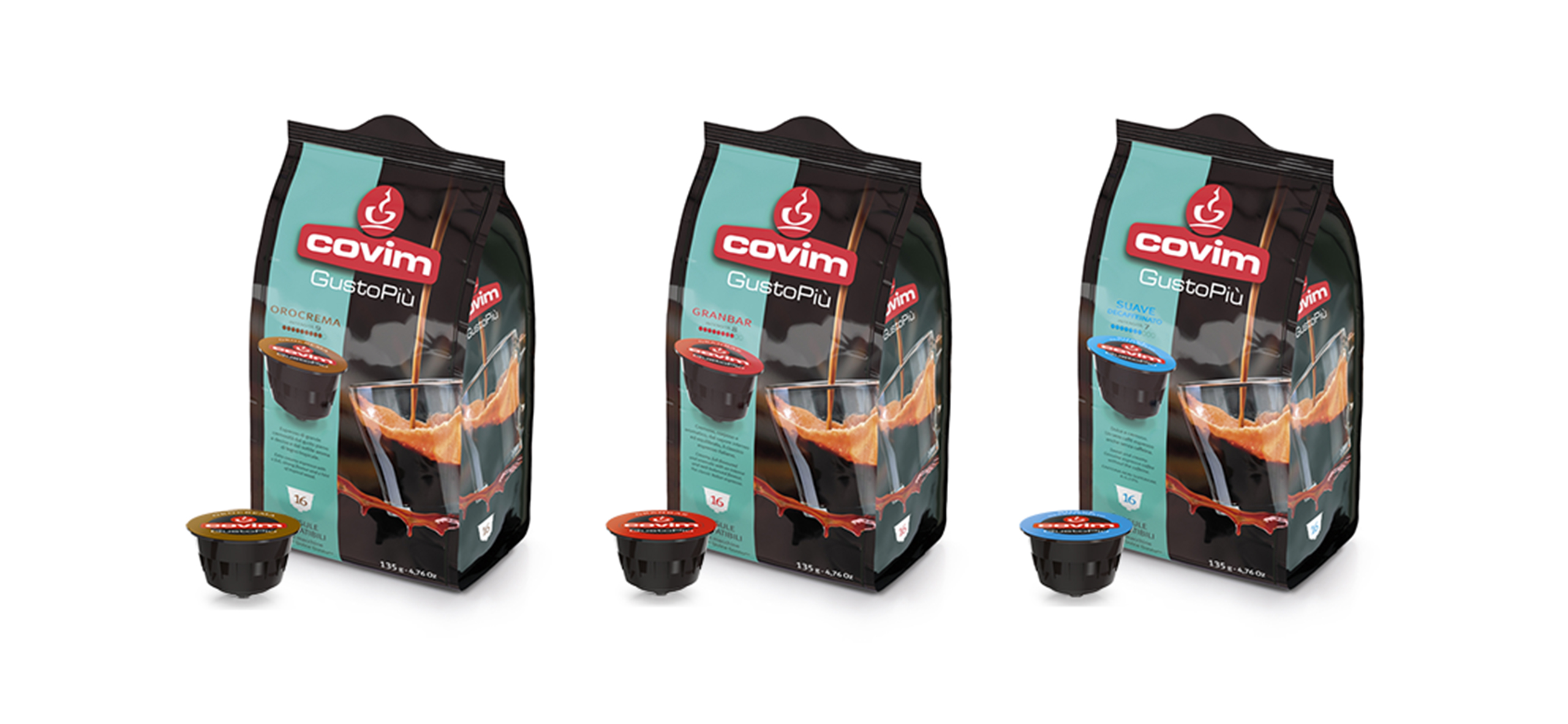 Visto il continuo lavoro di ricerca per migliorare la qualità dei suoi prodotti, Covim ha deciso di  realizzare una nuova versione delle sue capsule GustoPiù compatibili Nescafè® Dolce Gusto®, ora ancora più cremose e aromatiche. E per una migliore conservazione del prodotto saranno confezionate all’interno di pratici sacchetti da 16 capsule per gustare anche a casa un ottimo espresso