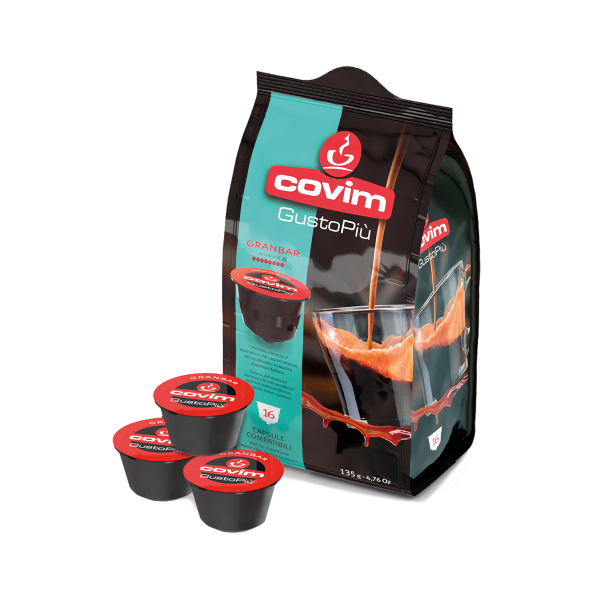 1 Confezione da 96 (6x16pz) capsule monodose compatibili con il sistema Nescafè® Dolce Gusto®*. La mia miscela Granbar, un connubio ideale di arabica e robusta con note di miele e cereali. Per un caffé dalla morbida intensità.